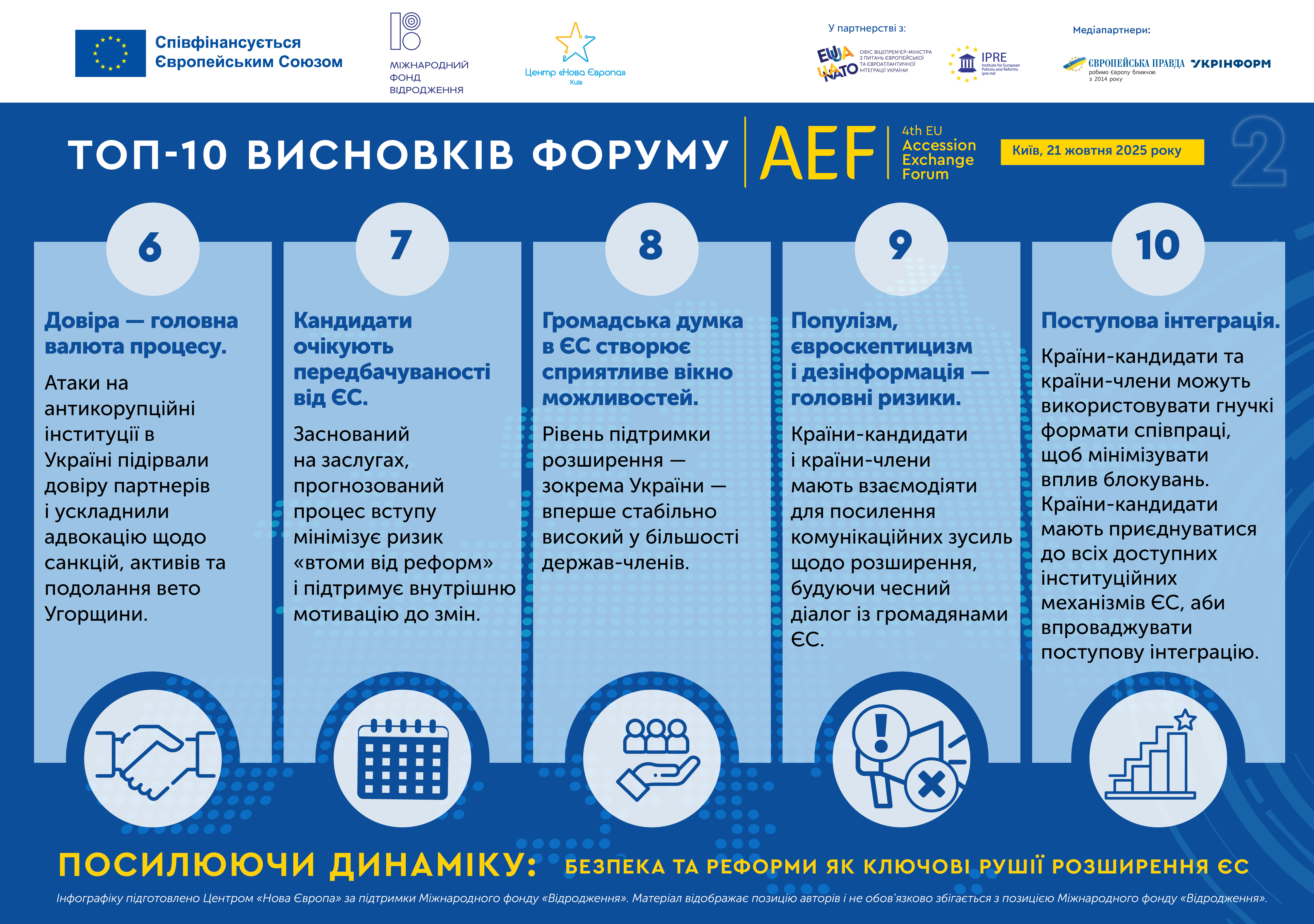 - Фактична прозорість і спільні комунікації важливі для протидії дезінформації та популістським наративам про «високу ціну» розширення.