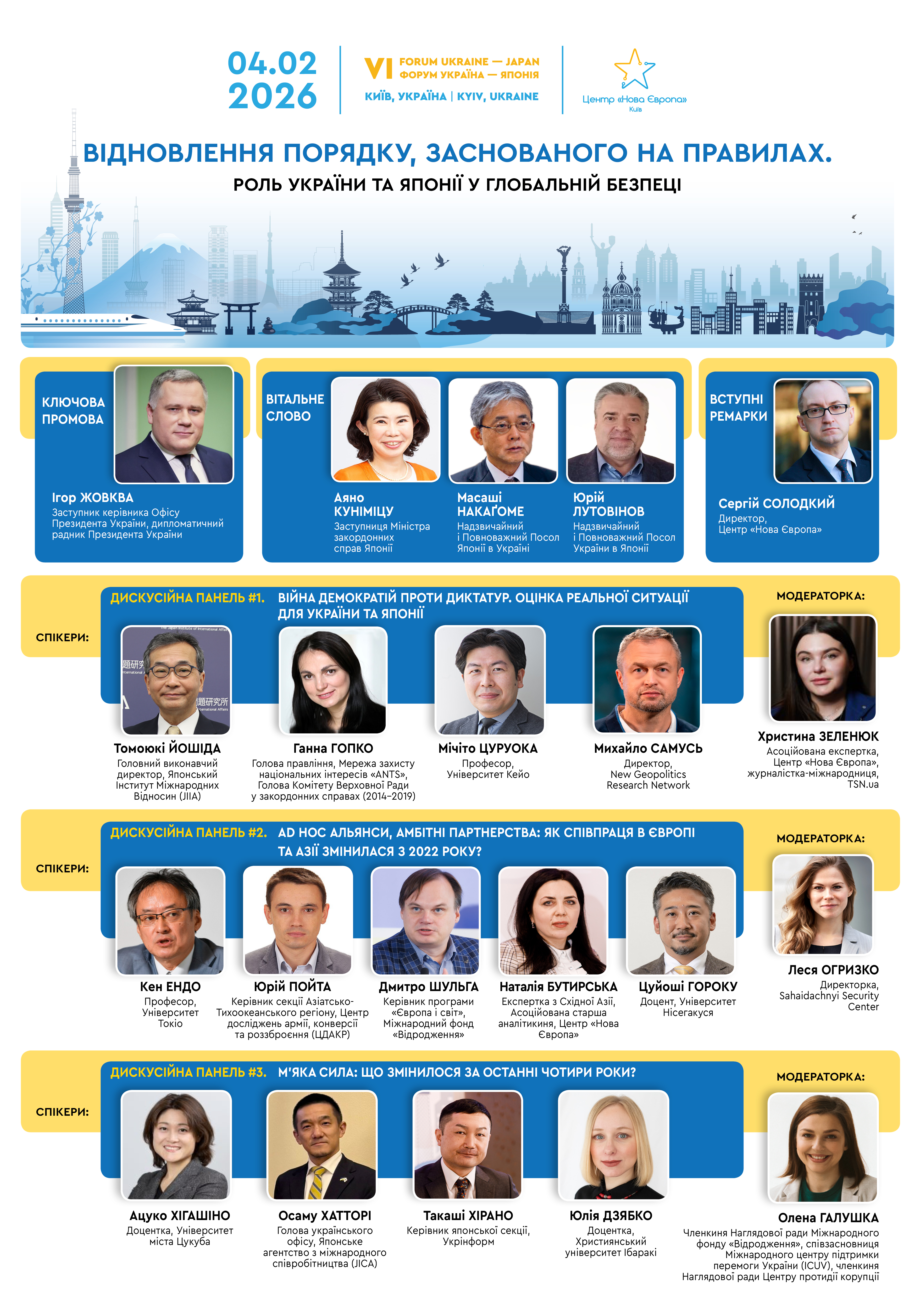 Центр «Нова Європа» запрошує на Шостий Форум Україна – Японія «Відновлення порядку, заснованого на правилах. Роль України та Японії у глобальній безпеці».