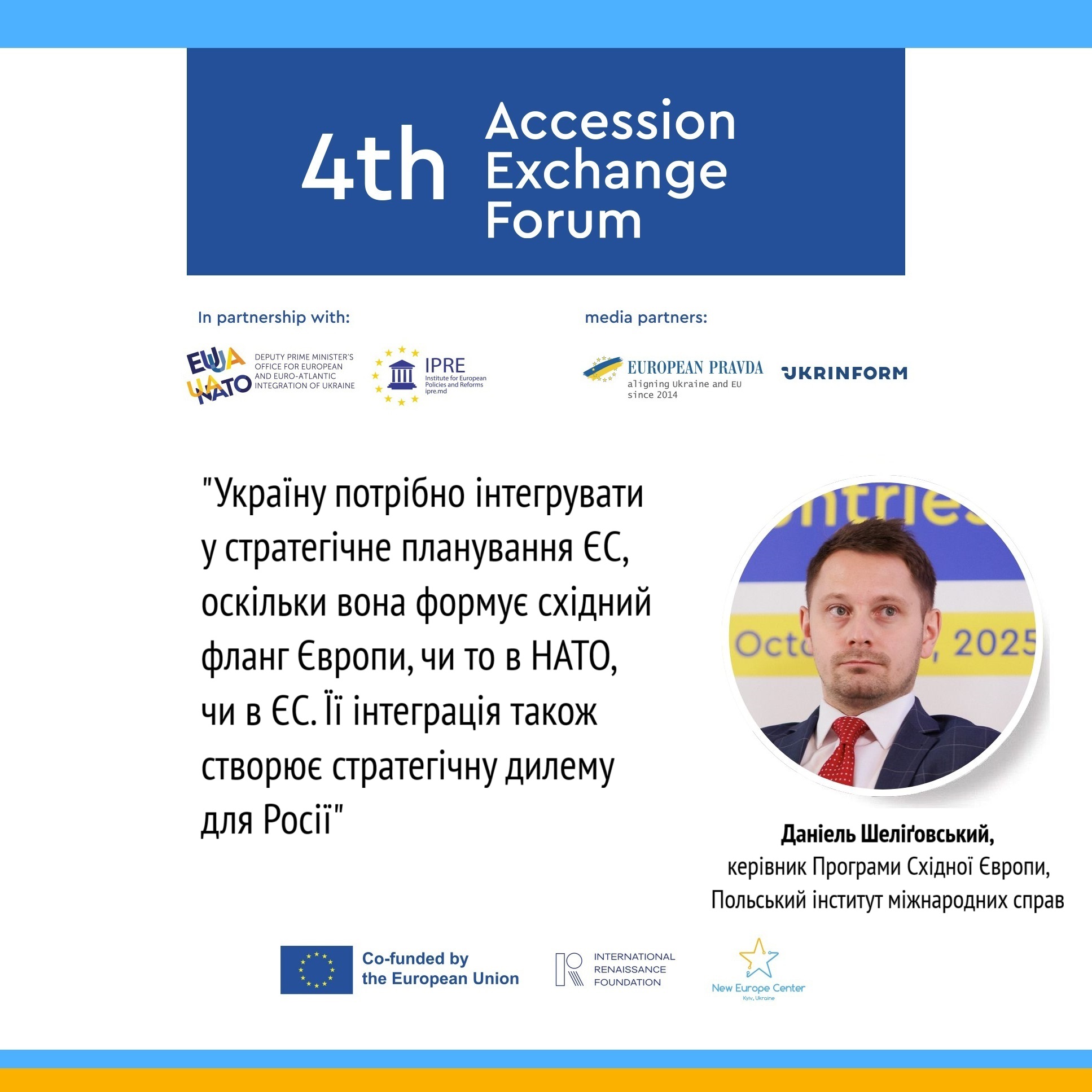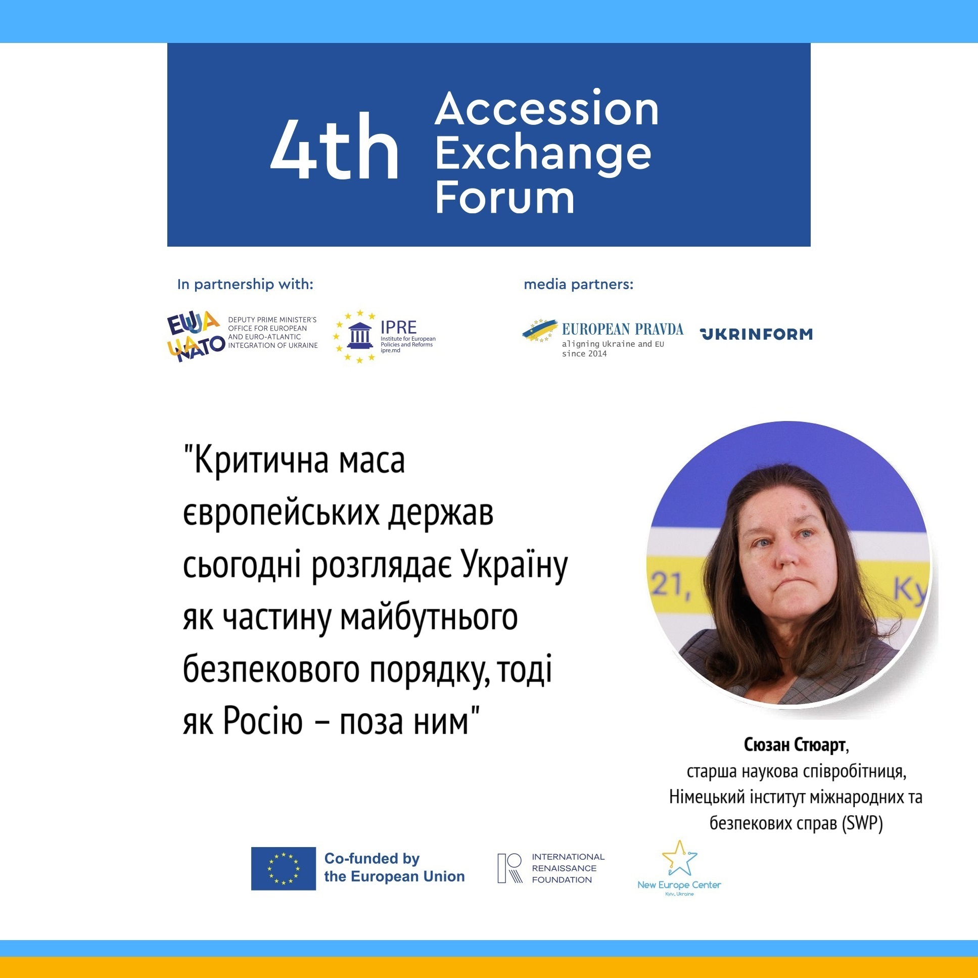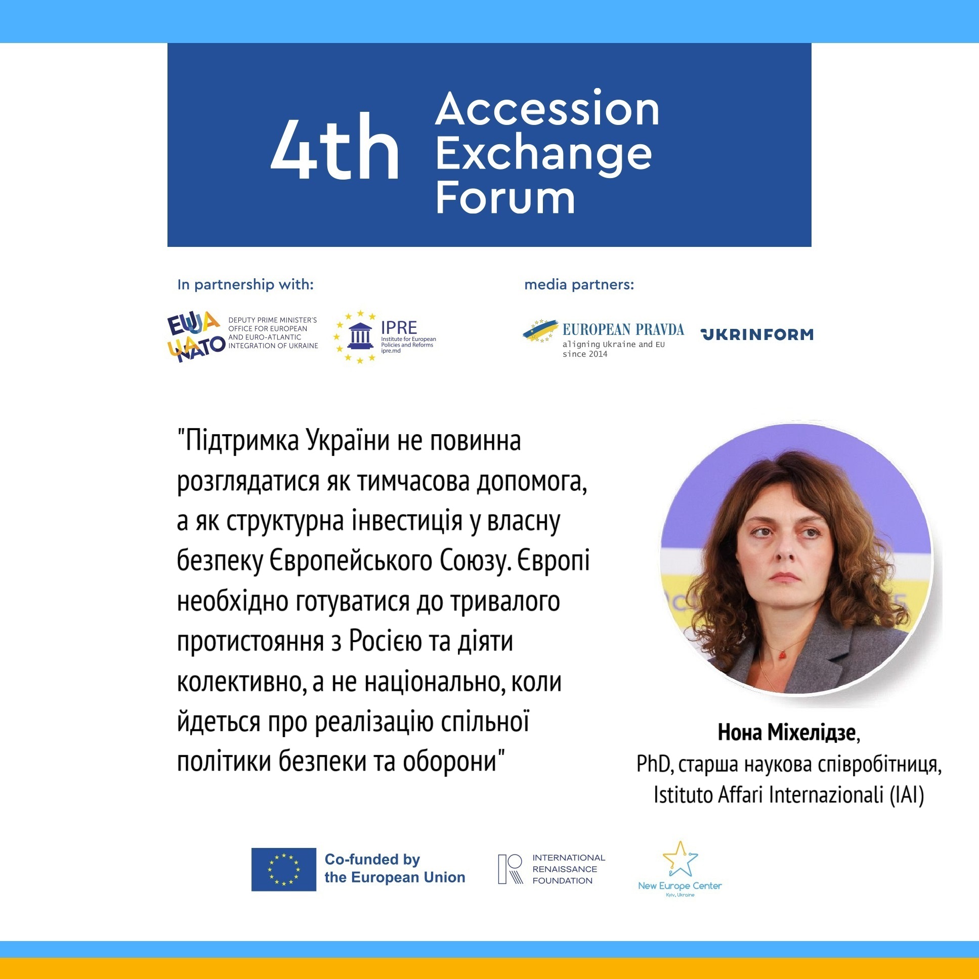 Під час третьої сесії «Сильніші разом: Україна, країни-кандидати та взаємозалежність безпеки Європи» у межах Четвертого EU Accession Exchange Forum експерти обговорювали, чому вступ України до Європейського Союзу неможливо відокремити від сучасної архітектури європейської безпеки. Спікери наголосили, що сьогодні Україна є постачальником безпеки для всього континенту, адже вона захищає не лише власний суверенітет, але й фундаментальні засади європейського миру.