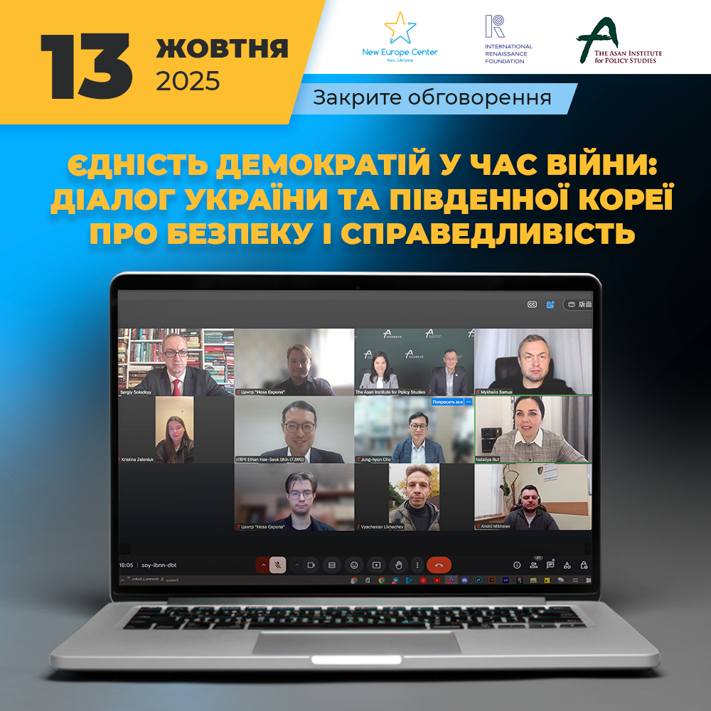 13 жовтня 2025 року Центр «Нова Європа» (Україна) спільно з Інститутом політичних досліджень Асан (Республіка Корея) організували онлайн-дискусію «Посилення демократичних партнерств між Азією та Європою: погляди України та Південної Кореї».