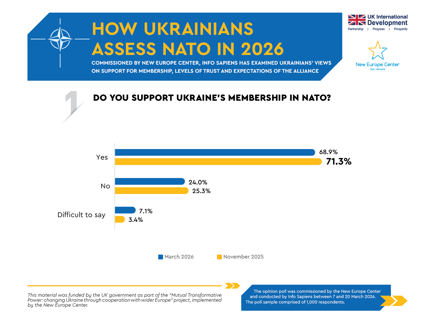 The opinion poll was commissioned by the New Europe Center and conducted by Info Sapiens between 7 and 20 March 2026. The poll sample comprised of 1,000 respondents.