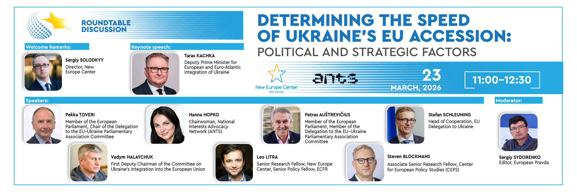 New Europe Center invites to participate in the roundtable “Determining the Speed of Ukraine’s EU Accession: Political and Strategic Factors.” The event is organised in partnership with the civil society organisation National Interests Advocacy Network (ANTS).