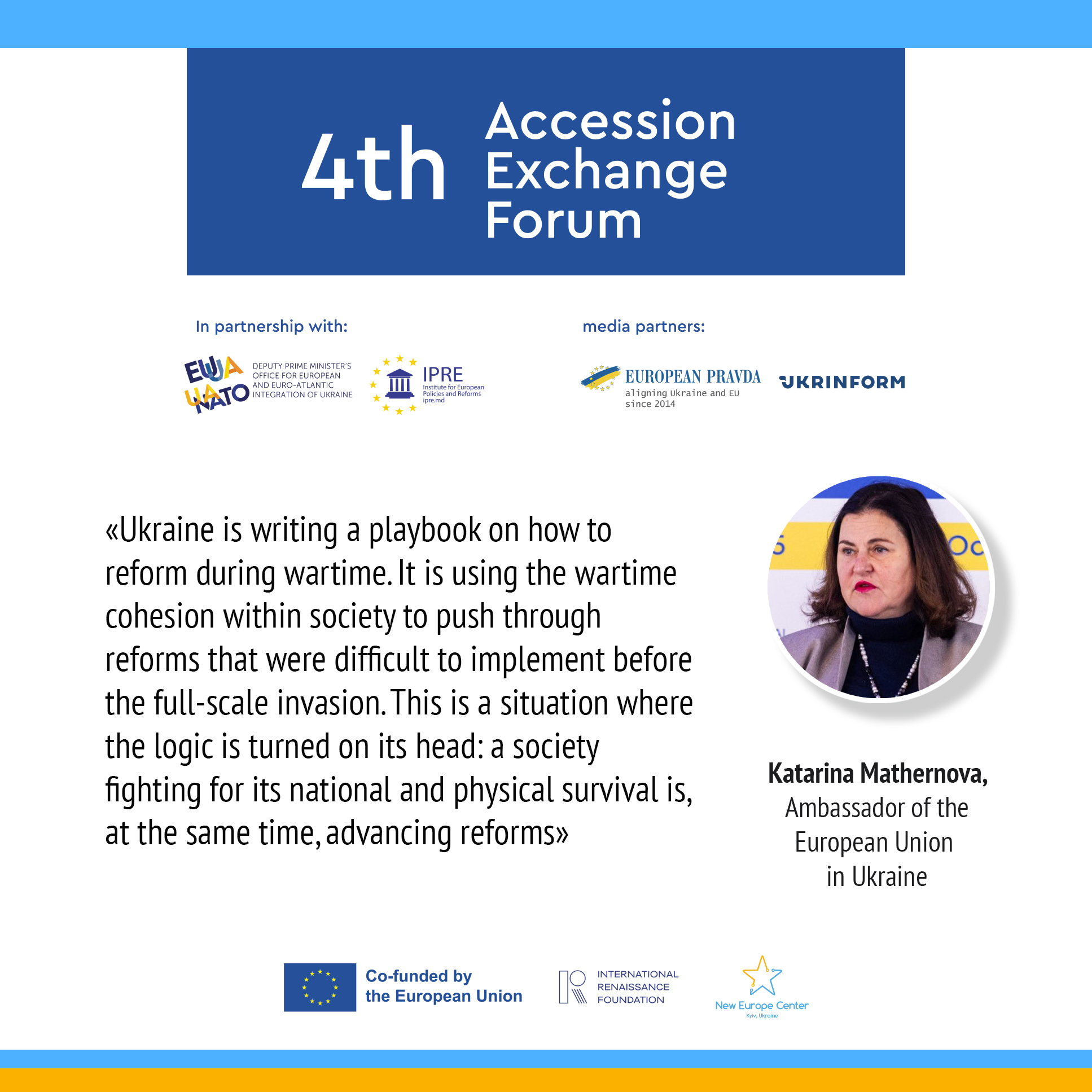 Katarina Mathernova, Ambassador of the European Union in Ukraine, during the 4th EU Accession Exchange Forum emphasized that Ukraine’s EU accession process is not only a technical or political challenge, but a historic mission for both Ukraine and Europe. She highlighted Ukraine’s progress on reforms despite the ongoing full-scale war, called for unity and strategic courage in Europe, and underlined that helping Ukraine prevail is essential for lasting peace on the continent.
