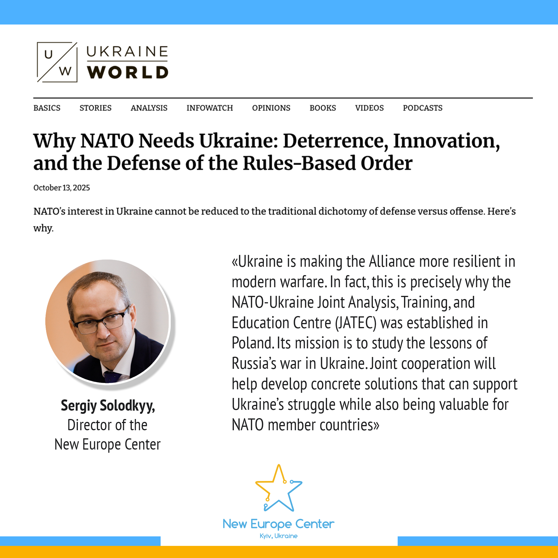 Sergiy Solodkyy, Director of the New Europe Center, comments why Ukraine’s integration into NATO is essential for the Alliance’s future in a new UkraineWorld article.