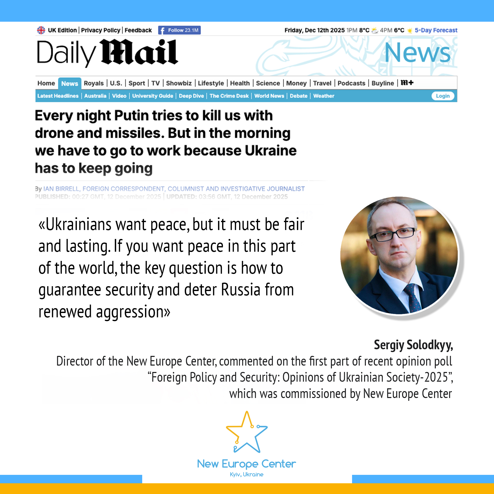 Sergiy Solodkyy, Director of the New Europe Center, commented on the first part of recent opinion poll “Foreign Policy and Security: Opinions of Ukrainian Society-2025”, which was commissioned by New Europe Center.