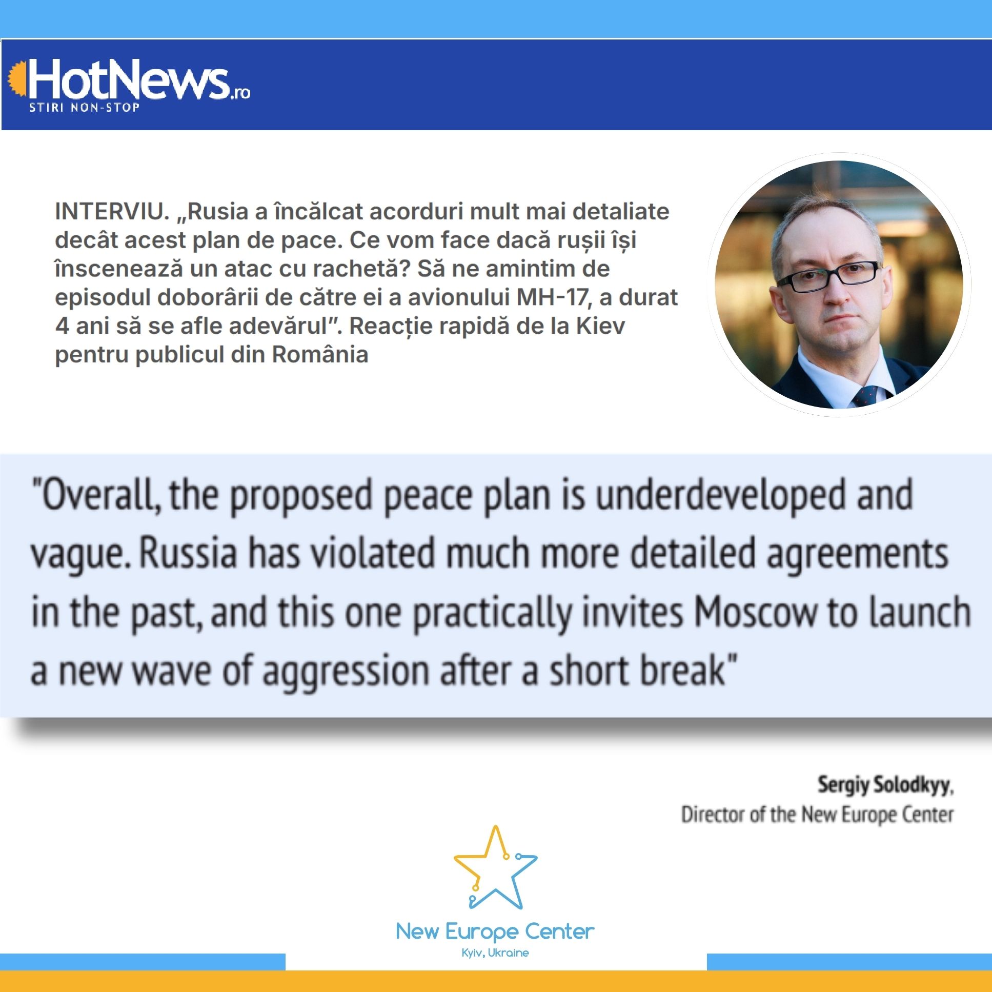 This was stated by Sergiy Solodkyy, Director of the New Europe Center, in an interview with HotNews.ro (one of Romania’s largest online media).