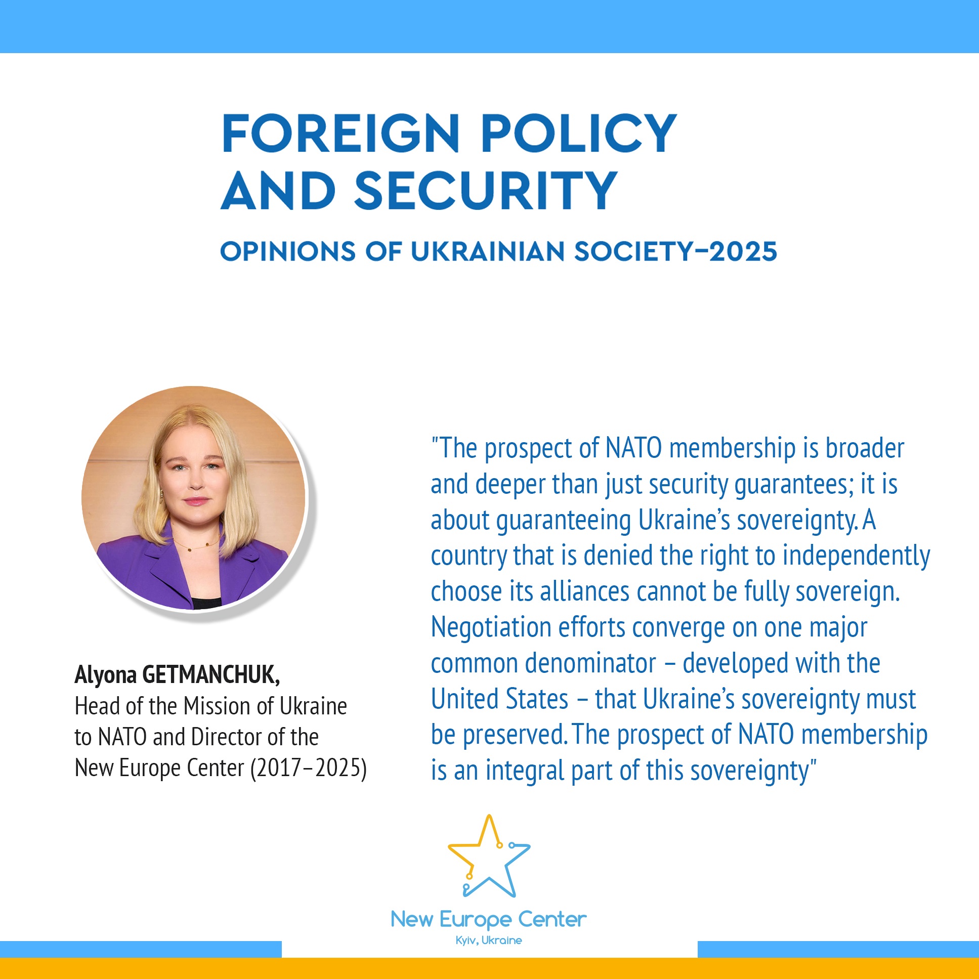 Alyona Getmanchuk, Head of the Mission of Ukraine to NATO and Director of the New Europe Center (2017–2025), emphasized during commenting on the results of a recent opinion poll. During the presentation, Ambassador Getmanchuk outlined key trends in public attitudes and what they mean for negotiations: