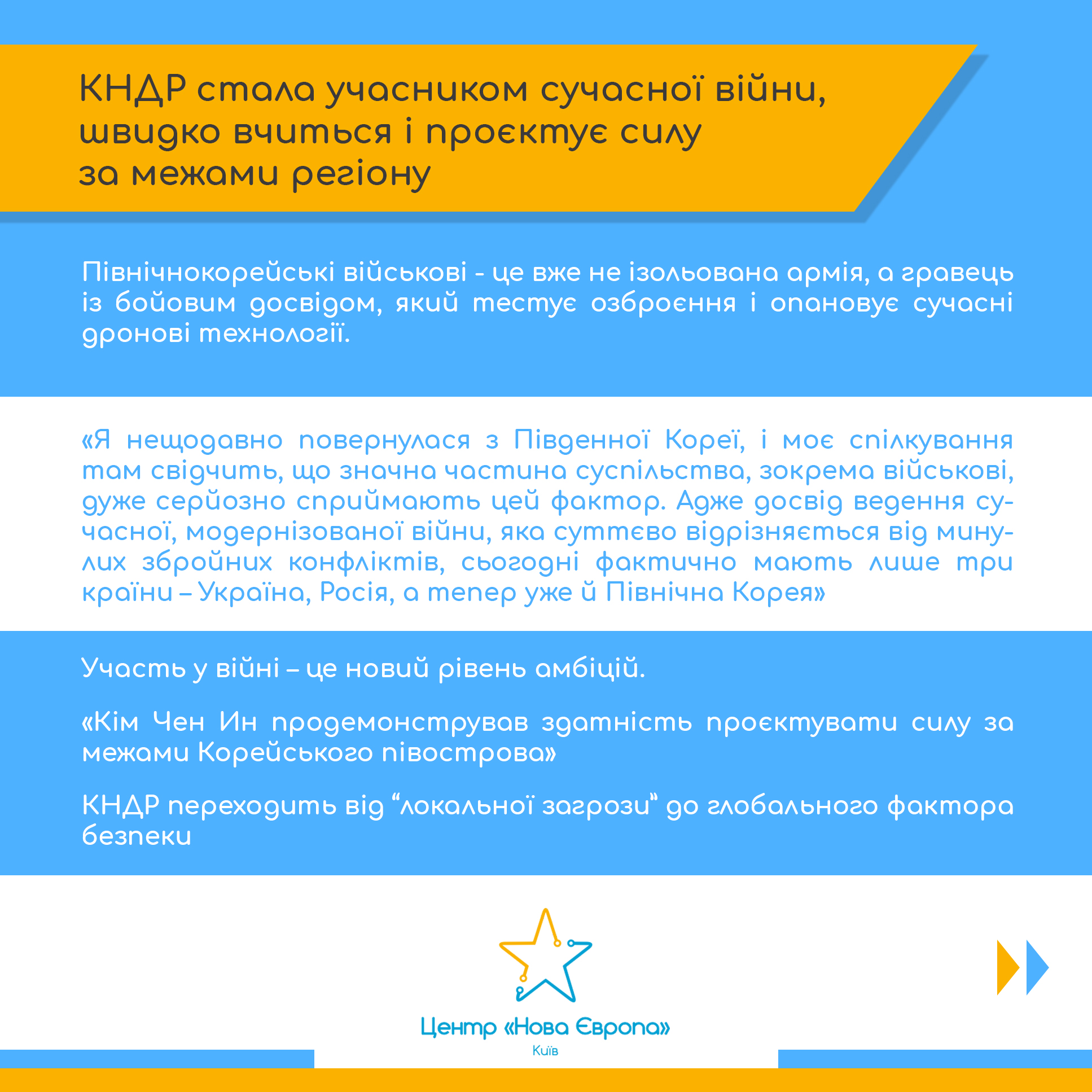 - підкреслює, що участь у війні проти України дала Північній Кореї бойовий досвід і доступ до сучасних військових практик;