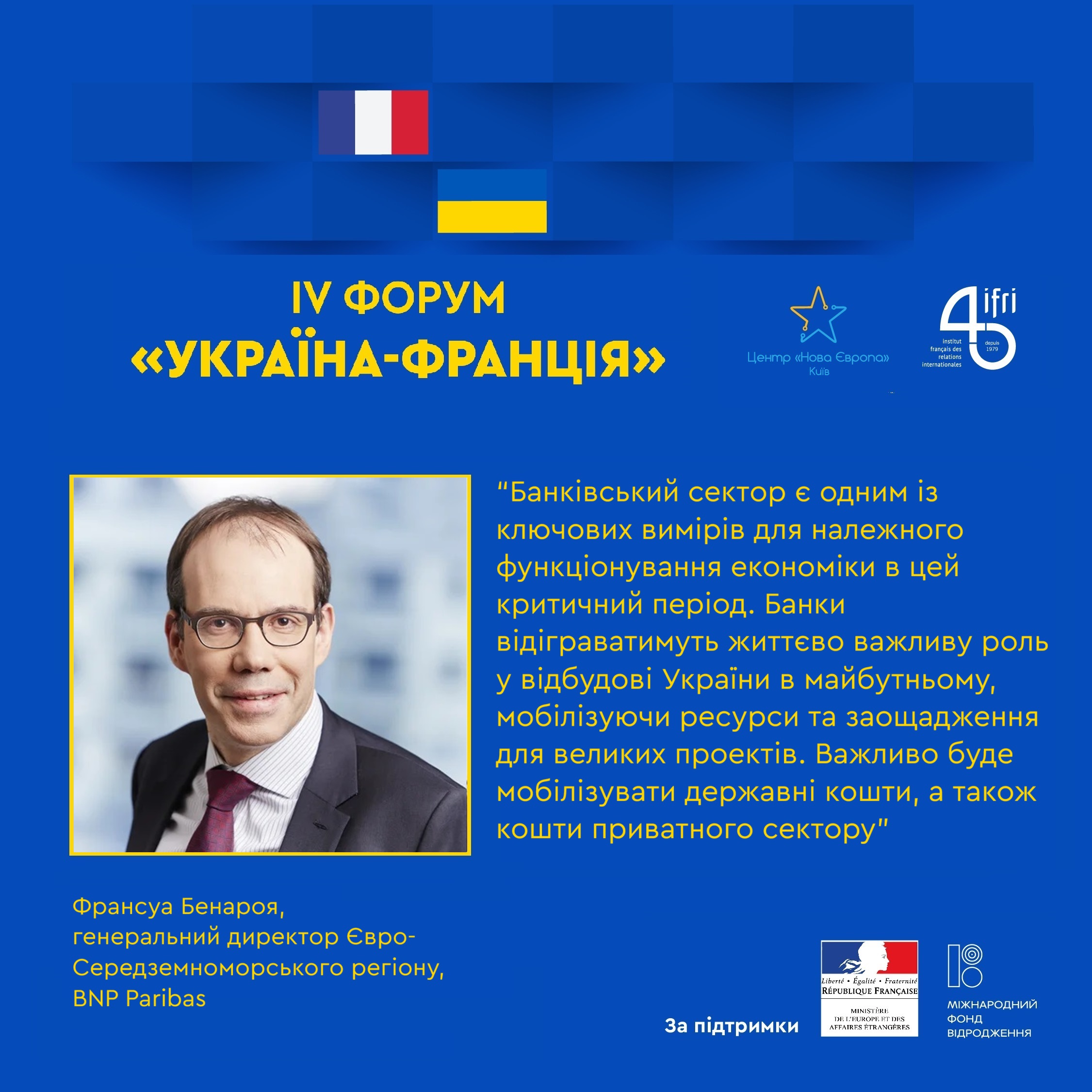 - Французький банківський сектор уважно стежить за подіями в Україні й розглядає її як ключового партнера в регіоні;