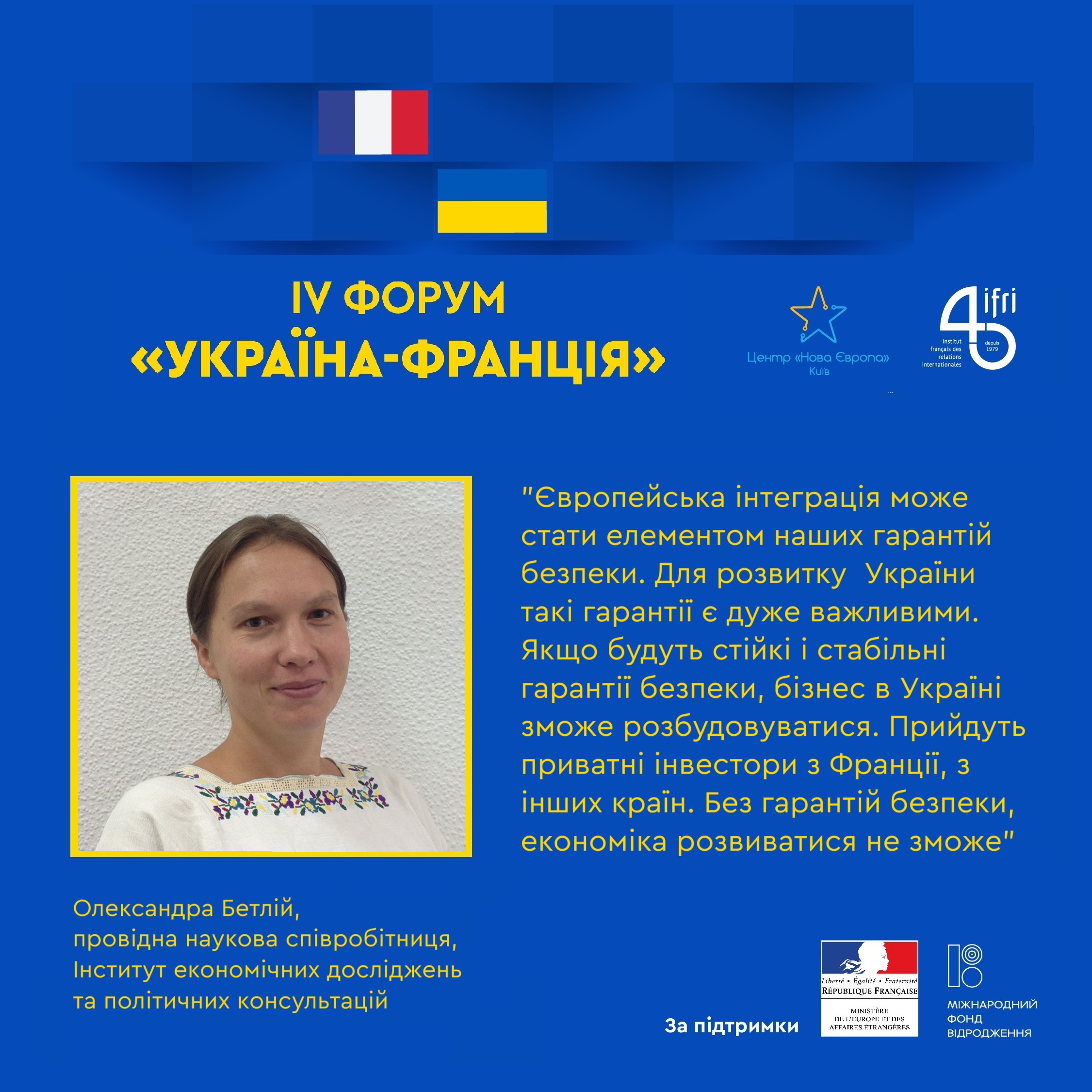 Олександра Бетлій, провідна наукова співробітниця, Інститут економічних досліджень та політичних консультацій, Україна: