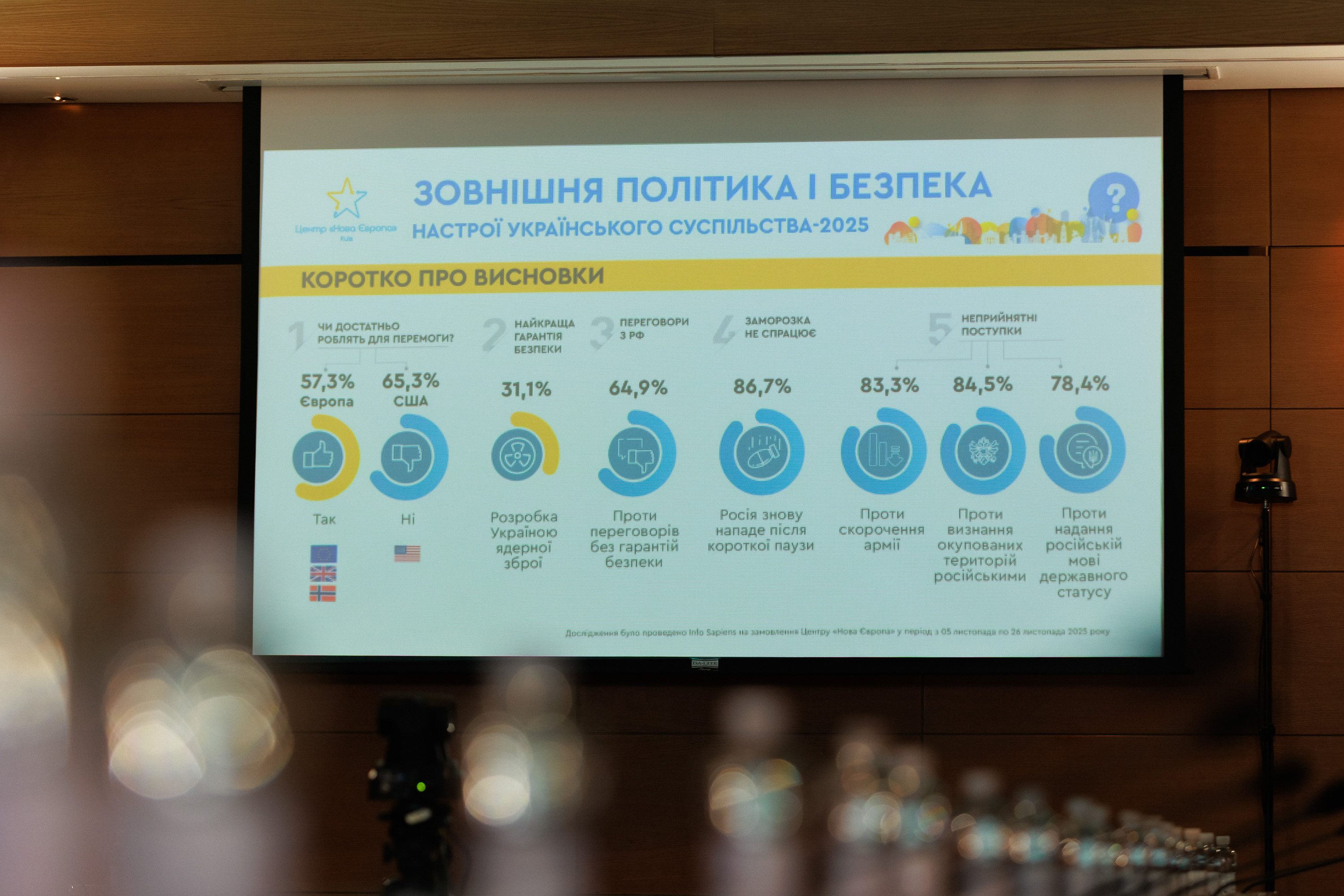 15 грудня Центр «Нова Європа» презентував результати соціологічного опитування «Зовнішня політика і безпека. Настрої українського суспільства – 2025». У заході взяли участь представники українського уряду, Верховної Ради, дипломати  й експерти.